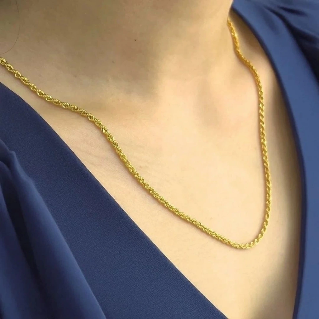 Bu 14 ayar altın halat zincir, zarif ve gösterişli bir görünüm sunar. 75 cm uzunluğuyla rahat kullanım sağlayan bu zincir, farklı kıyafetlerle uyum gösterir.Ürün Özellikleri: