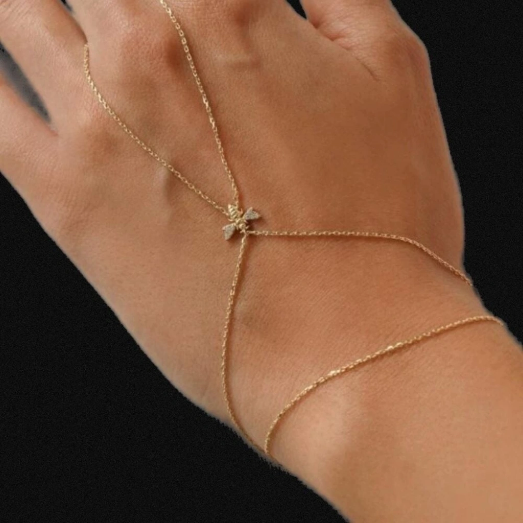 Bu 14 Ayar Altın Arı Şahmeran, Evla Kuyumculuk tarafından özenle tasarlanıp üretilmiş bir mücevherat ürünüdür. Yüksek kaliteli malzemeler ve özenli işçilikle yapılan bu bileklik, zarif ve dikkat çekici bir görünüme sahiptir.Bilekliğin yapımında 14 ayar altın kullanılmış olup, toplamda 1,98 gram ağırlığındadır. Bilekliğin tasarımında arı motifleri ve şahmeran detayları bir araya getirilerek benzersiz bir estetik yakalanmıştır. Altın rengi, bilekliğe değer ve zarafet katarken, arı motifleri bilekliğe canlılık ve doğal bir temayı yansıtır.