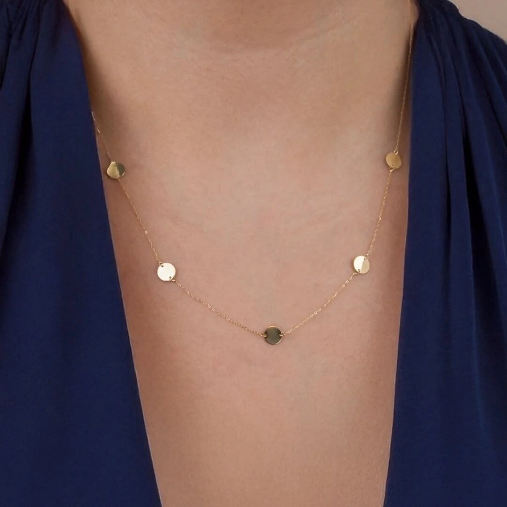 14 Ayar Altın Beş Pullu Kolye
