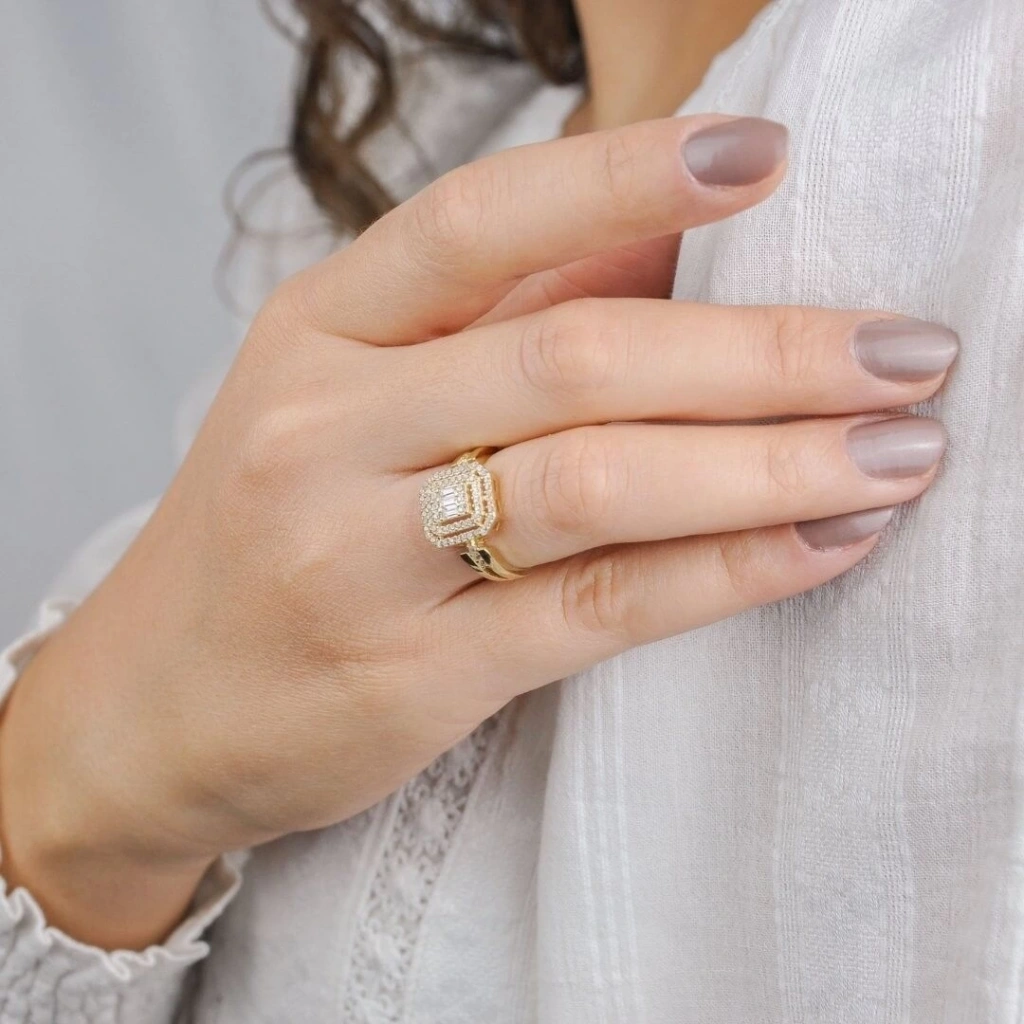 Evla Kuyumculuk, benzersiz ve özgün tasarımlarıyla tanınan bir markadır. Bugün sizlere sunacağımız 14 Ayar Altın Çift Kollu Baget Yüzük, zarafeti ve şıklığı bir araya getiren özel bir parçadır. Bu özel yüzük, 2,60 gram ağırlığındaki 14 ayar altın ile üretilmiştir. Altının parlak ve zengin görünümü, yüzüğün estetik cazibesini artırırken, hafif yapısı da konforlu bir kullanım sunar.Çift Kollu Baget Yüzük, etkileyici ve göz alıcı bir tasarıma sahiptir. İki paralel baget kesimli pırlanta sıralaması, yüzüğe benzersiz bir görünüm kazandırır. Bu yüzük, parıltısıyla dikkat çeker ve parmağınızda zarif bir şekilde durur. Her anında tarzınızı ve stilinizi vurgular.Evla Kuyumculuk'un 14 Ayar Altın Çift Kollu Baget Yüzük'ü, özel günlerde veya günlük kullanımda şıklığınızı tamamlayacak bir parçadır. Bu yüzük, özenle tasarlanmış ve yüksek kaliteli malzemelerle üretilmiştir. Evla Kuyumculuk, her detayı titizlikle düşünerek bu eşsiz yüzüğü ortaya çıkarmıştır.Eğer tarzınıza zarafet ve göz alıcılık katmak isterseniz, 14 Ayar Çift Kollu Baget Yüzük tam da size göre! Bu benzersiz parçayı Evla Kuyumculuk mağazalarında veya online platformlarında bulabilirsiniz. Kendinizi veya sevdiklerinizi şımartmak için bu yüzüğü tercih edebilirsiniz. Unutmayın, Evla Kuyumculuk kalitesi her zaman göz kamaştırır!14 Ayar Altın Çift Kollu Baget Yüzük
