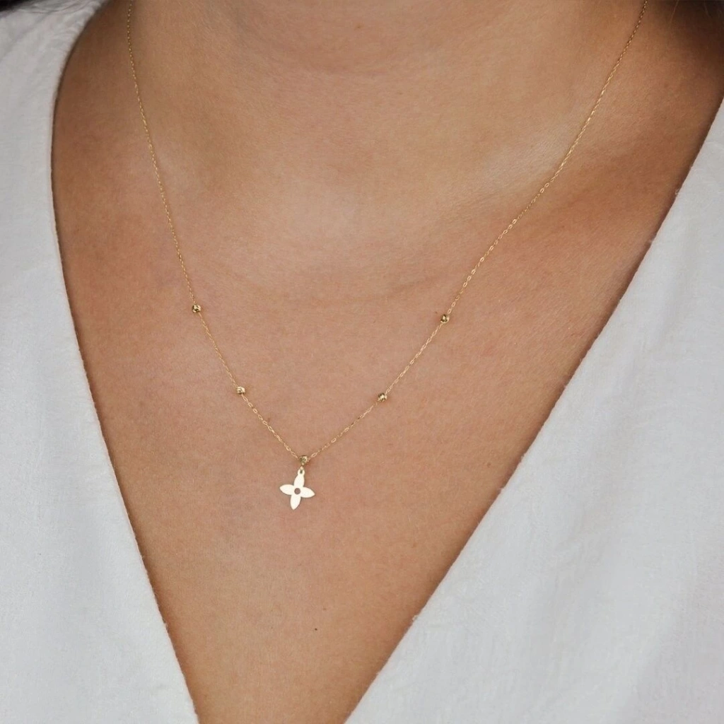 14 Ayar Altın Dorika Yonca Kolye