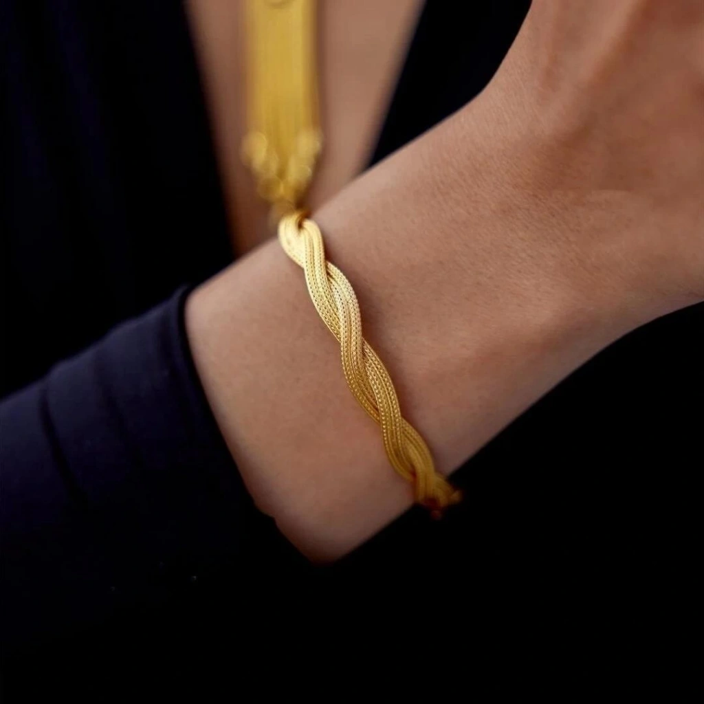 14 Ayar Altın 3 Sıra Örgü Set Takımı