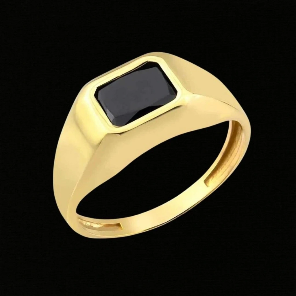 14 Ayar Altın Siyah Taşlı Erkek Yüzüğü