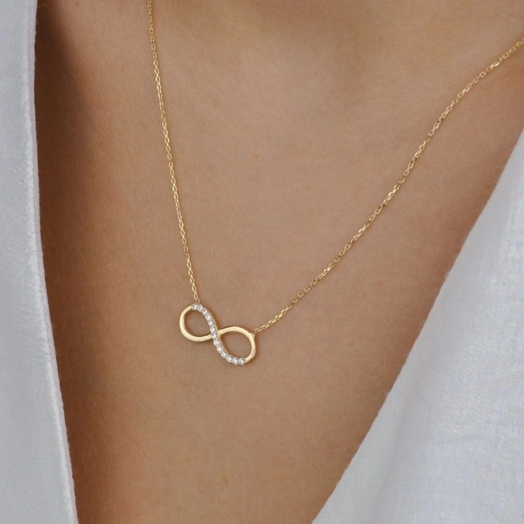 Evla Kuyumculuk, özgün ve şık tasarımlarıyla tanınan bir markadır. Bugün sizlere sunacağımız 14 Ayar Altın Sonsuzluk Kolye, hem zarif bir parça hem de anlamıyla öne çıkan bir tasarımdır.