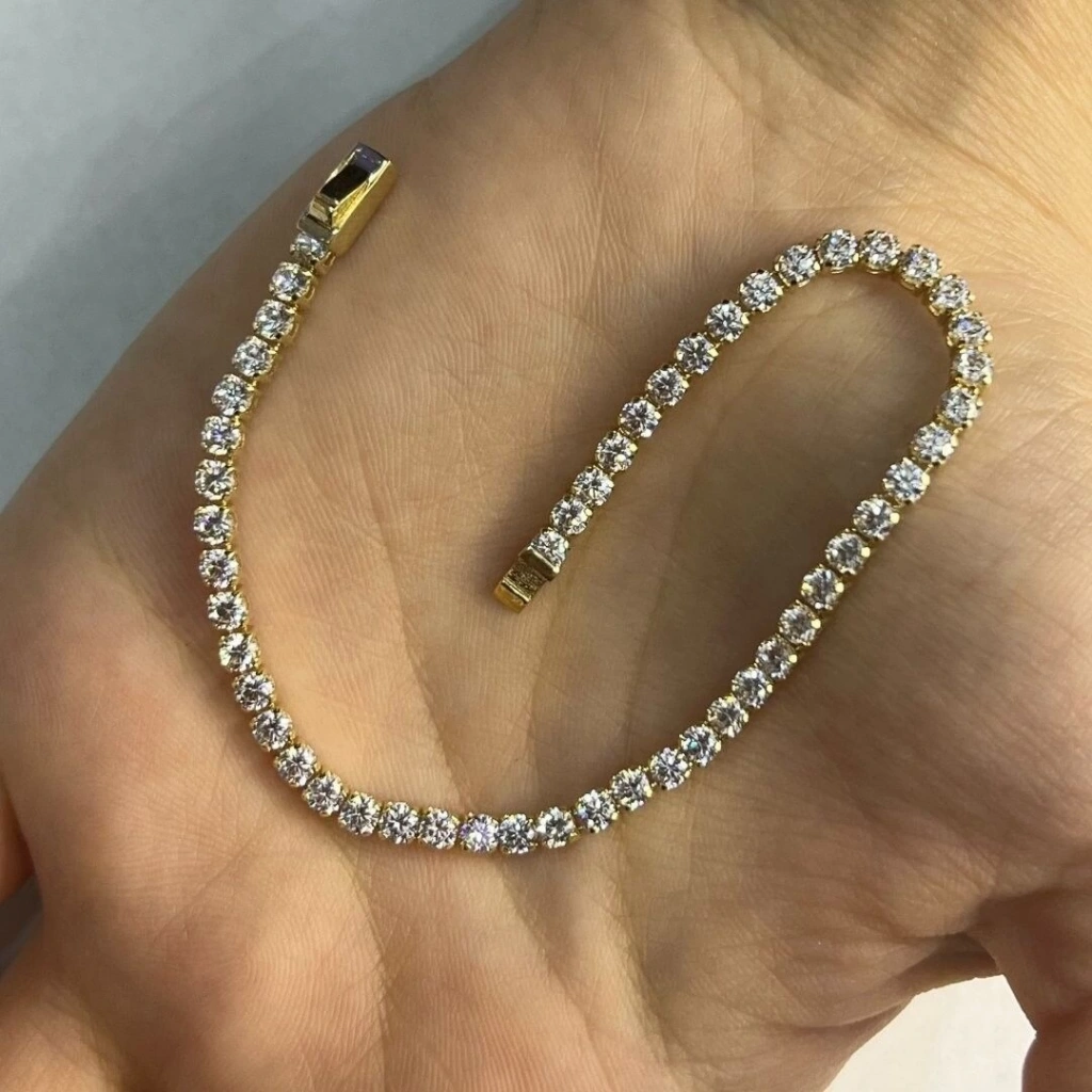 Bu 14 Ayar Altın Su Yolu Bileklik , şıklığı ve zarafeti bir arada sunan, dikkat çekici bir tasarıma sahiptir. 3 mm boyutundaki taşlarla süslenen su yolu dizaynı, bileklik boyunca parlak bir akış efekti oluşturarak her ortamda göz alıcı bir görünüm sunar.