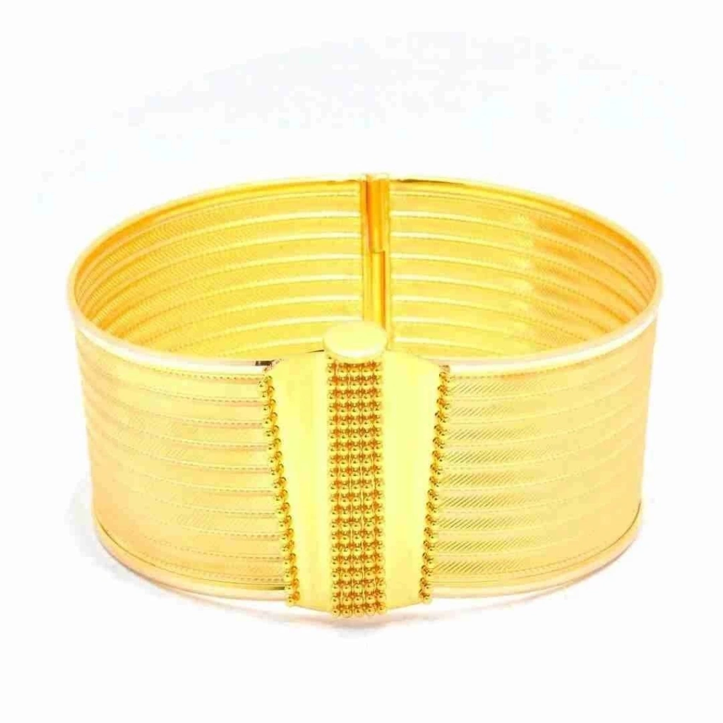 Evla Kuyumculuk'un özel koleksiyonundan 14 Ayar Altın Trabzon Hasır Kelepçe, etkileyici ve gösterişli bir kuyumculuk ürünüdür. Bu kelepçe, yüksek kaliteli 14 ayar altın kullanılarak özenle tasarlanmış ve işlenmiştir. Trabzon hasır deseniyle süslenen bu kelepçe, benzersiz bir görünüm sunar ve her türlü kıyafetle mükemmel bir uyum sağlar. Bu özel kelepçe, 28,02 gram ağırlığıyla sağlam ve gösterişli bir yapıya sahiptir. Bu sayede bileğinizi etkileyici bir şekilde süsler ve şıklığınızı vurgular. Trabzon hasır deseni, kelepçenin üzerindeki örgü detaylarıyla birleşerek göz alıcı bir etki yaratır.