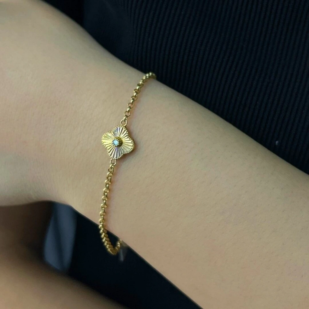• Tasarım: Dört yapraklı yonca figürü, şans ve zarafet sembolü 14 Ayar Altın Yonca Bileklik