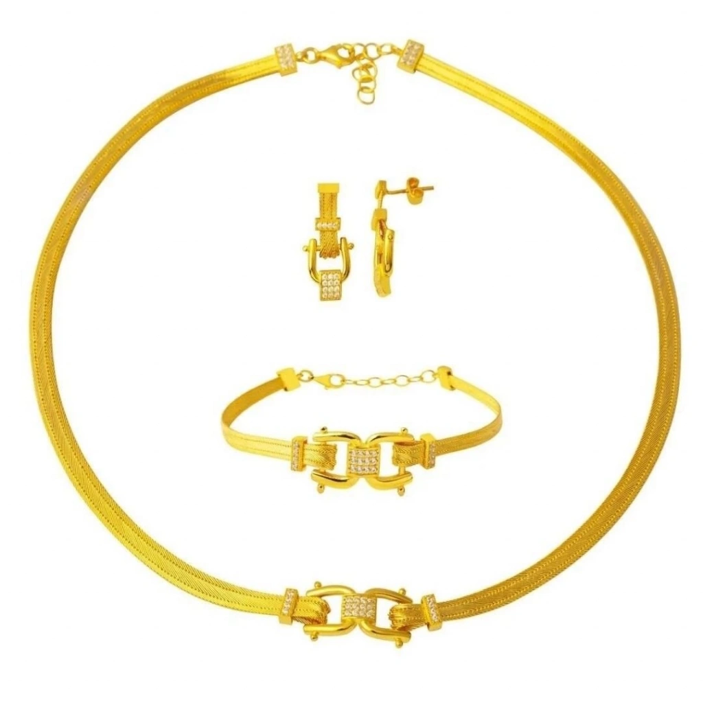 Bu set takımı, özenle işlenmiş 22 ayar altın malzemeden üretilmiştir ve altının saflığıyla birlikte kalitesini göstermektedir.