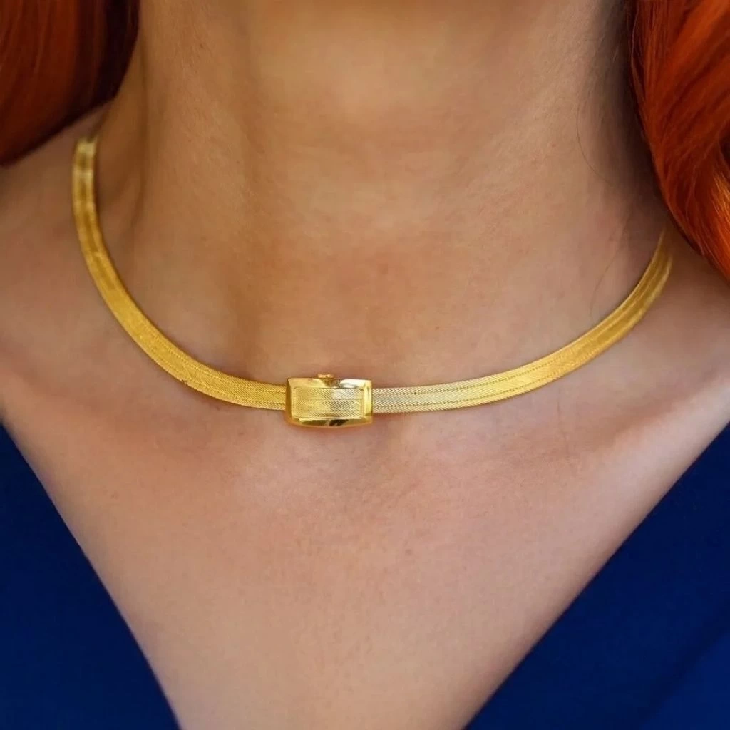 Bu zarif 3 Sıra Trabzon Hasır Kolye, geleneksel Trabzon hasır işçiliğinin modern bir yansımasıdır. 8 ayar altından üretilen bu kolye, özel dokuma tasarımı ve 3 sıralı görünümüyle zarafetinizi ön plana çıkarır. 45 cm uzunluğu sayesinde boynunuza mükemmel şekilde oturur ve her türlü kombinle rahatlıkla uyum sağlar.