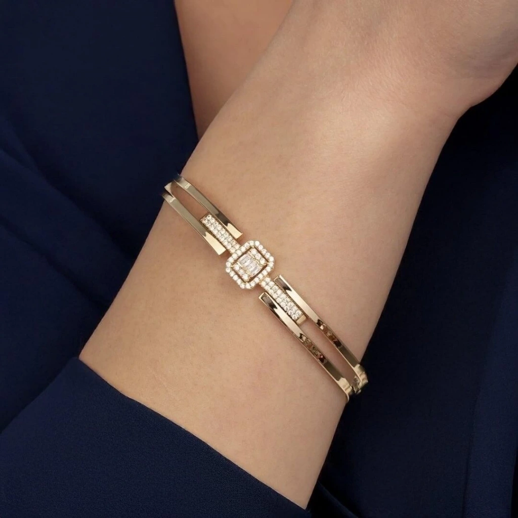 Modern baget tasarımı ve ince işçiliğiyle her tarzla uyumsağlayan zarif bir aksesuardır. 8 ayar altından üretilmiş bu kelepçe, günlükkullanımda ve özel davetlerde şıklığınızın tamamlayıcısı olacak.