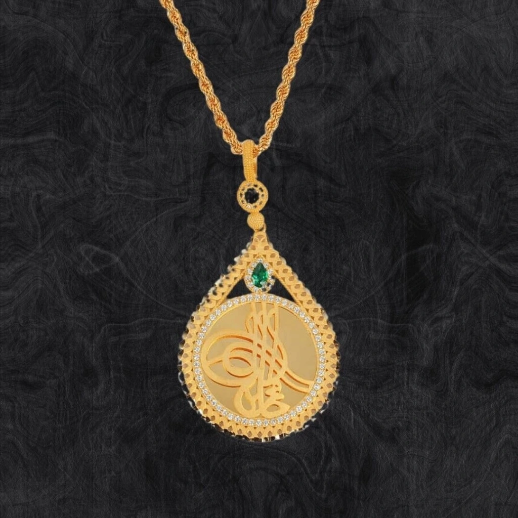 8 Ayar Altın Damla Tuğralı Altın Kolye