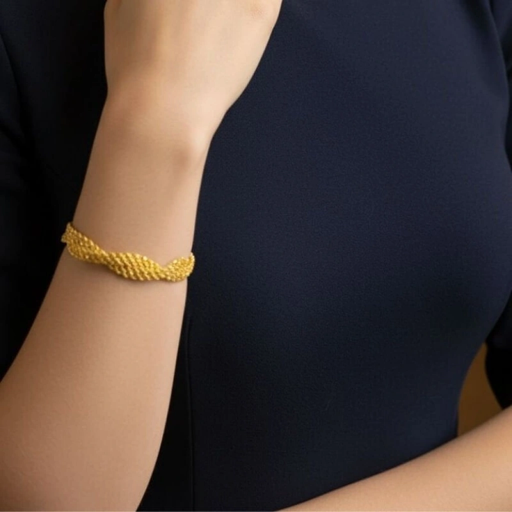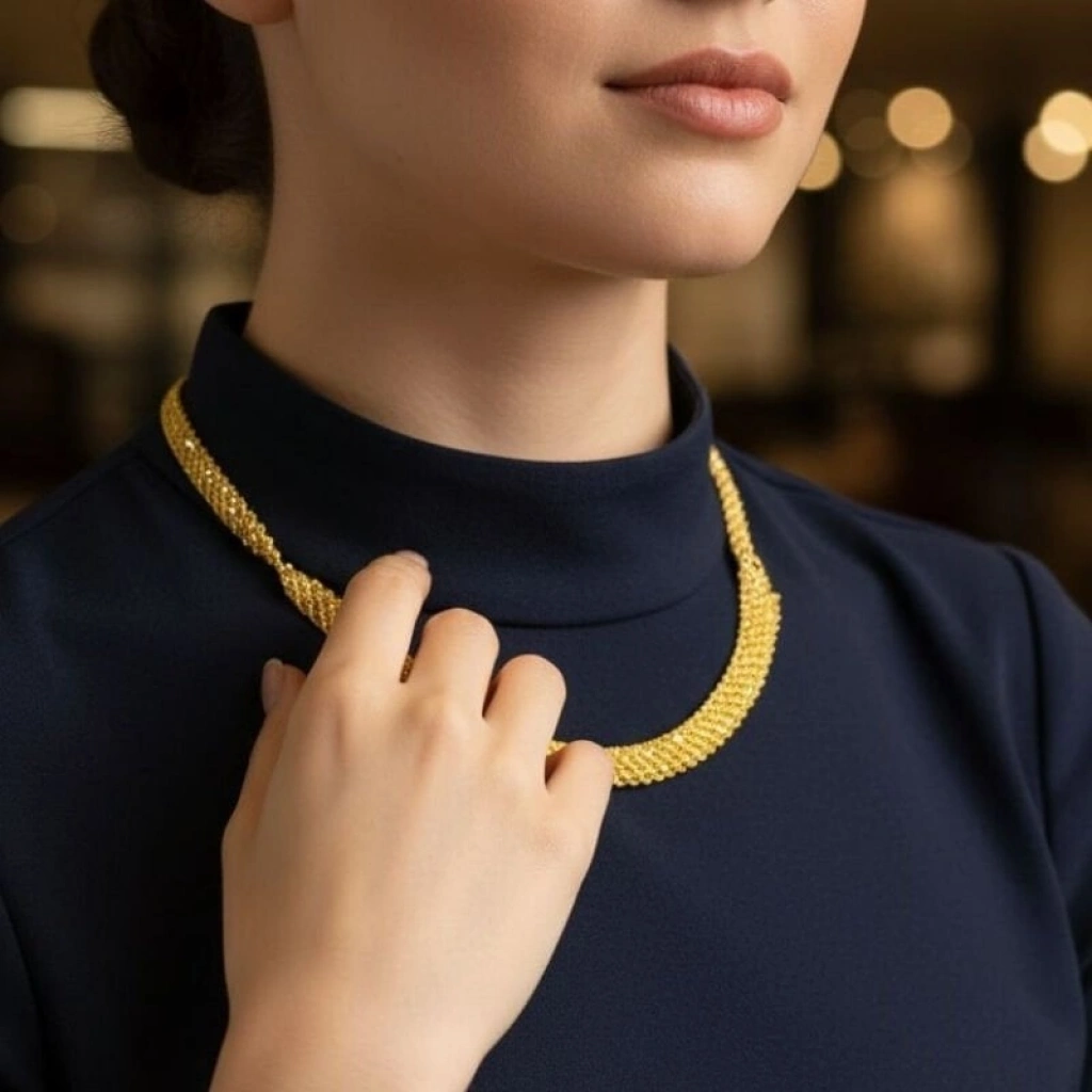 Halat örgü altın tasarımı, sete karakteristik bir duruş kazandırırken günlük kullanımda konforlu bir deneyim sağlar. Altın set takımı arayanlar için hem estetik hem de değerli bir tercih olan bu model, sade şıklığıyla her kombine uyum sağlar. Dayanıklı yapısı sayesinde uzun süre güvenle kullanılabilir.