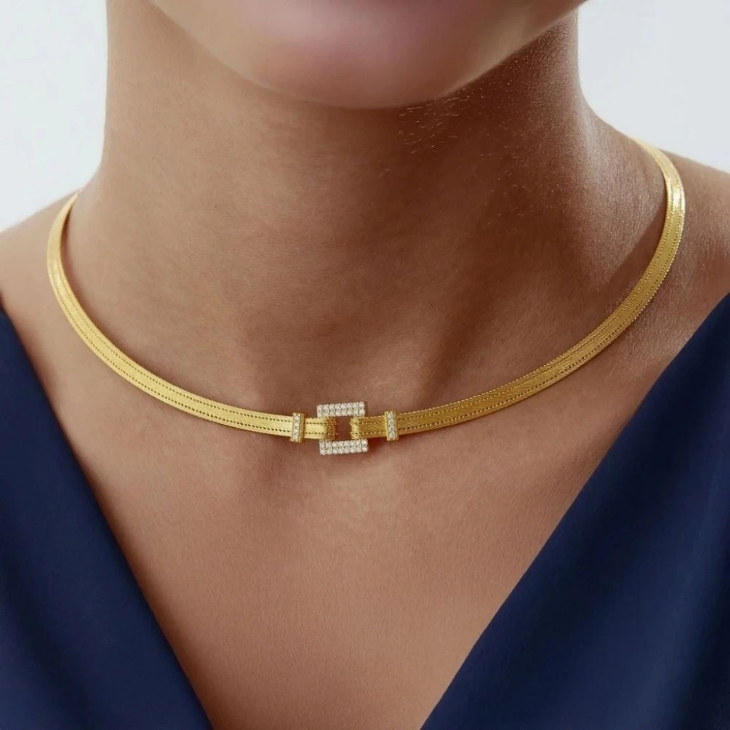 Altın taşlı kare Trabzon set takımı, geleneksel Trabzon işçiliğinin modern yorumuyla hazırlanmış göz alıcı bir takıdır. 14 ayar altından üretilen bu set; kolye, bileklik ve küpeden oluşur. Kare desenli yüzeyi ve parlak taş detayları sayesinde hem özel günlerde hem de klasik giyimde şıklığın tamamlayıcısı olur.