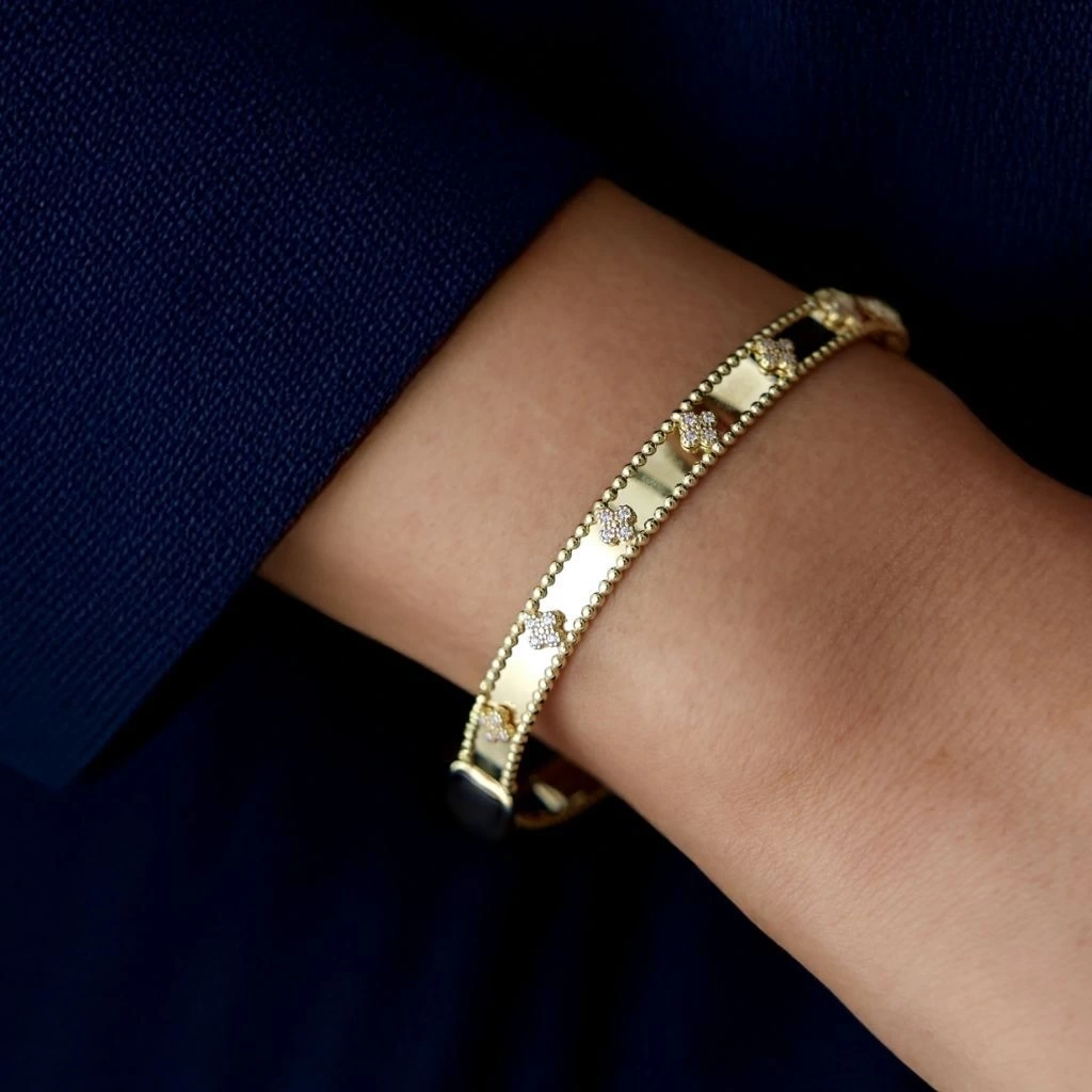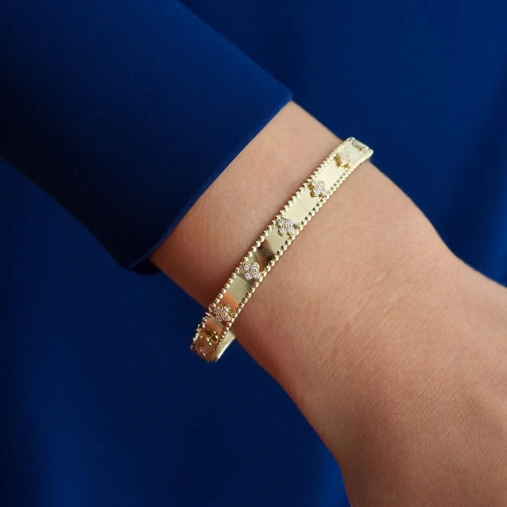 Altın Taşlı Yonca Kelepçe – 14 Ayar 10 Gr