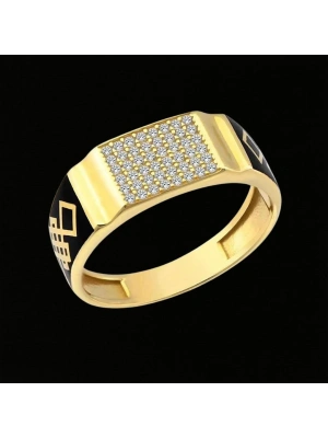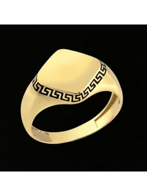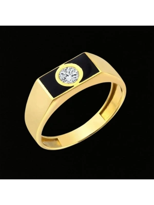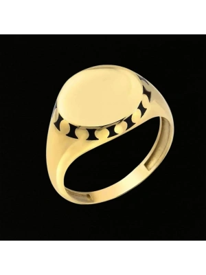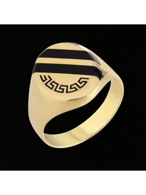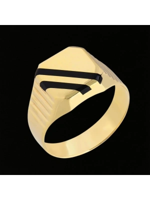 14 Ayar Altın Siyah Mine İşlemeli Erkek Yüzüğü