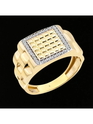 14 Ayar Altın Kare Taşlı Erkek Yüzüğü