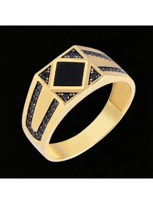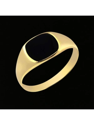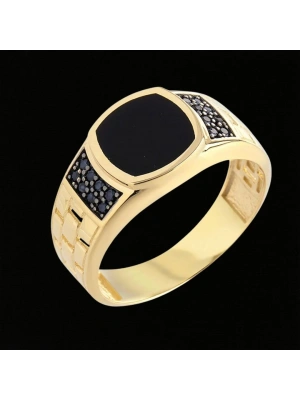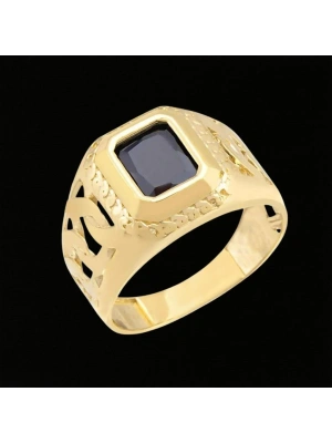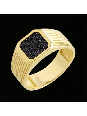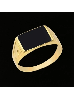 14 Ayar Altın Siyah Taşlı Erkek Yüzüğü