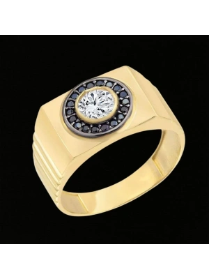 14 Ayar Altın Taşlı Erkek Yüzüğü