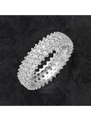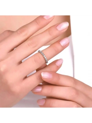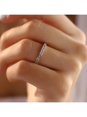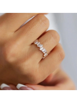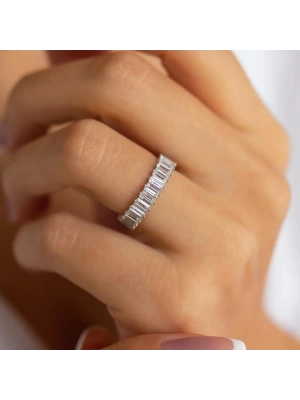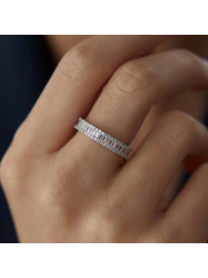 14 Ayar Beyaz Altın Sıra Taşlı Baget Tamtur Yüzük