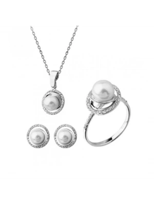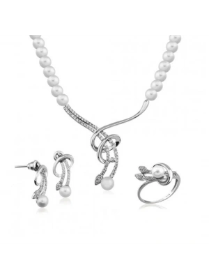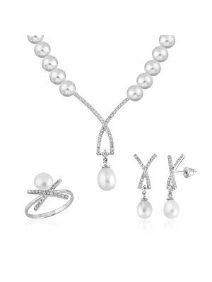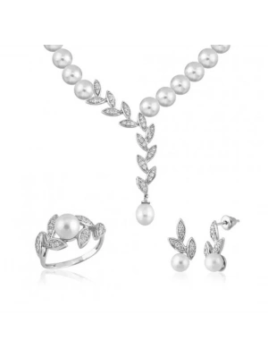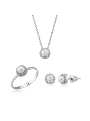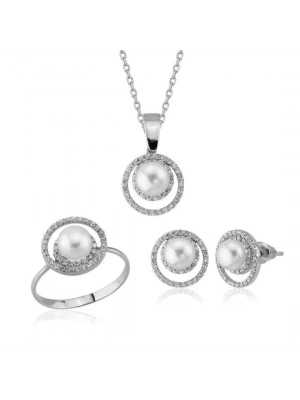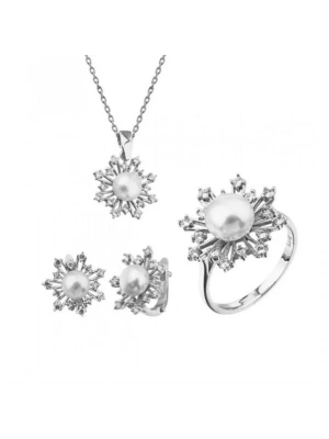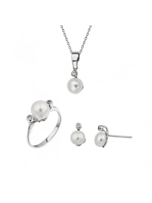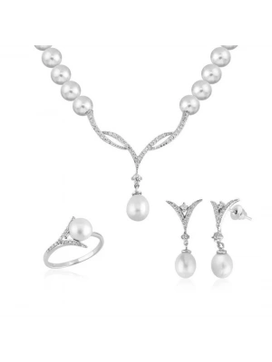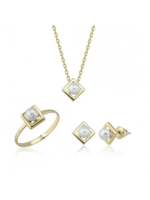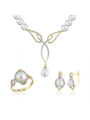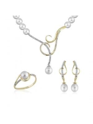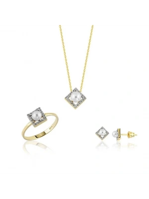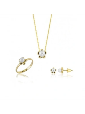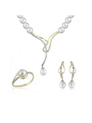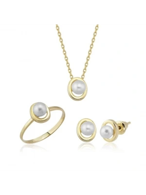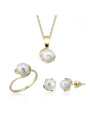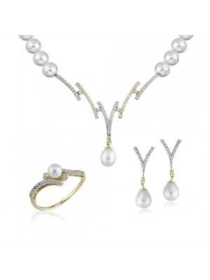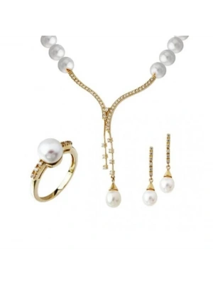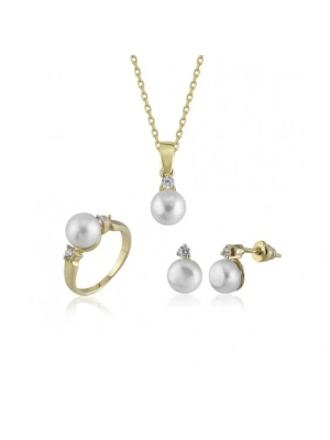 14 Ayar Altın İnci Beyaz Düğün Seti Takımı