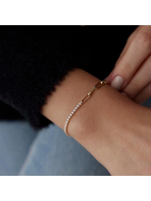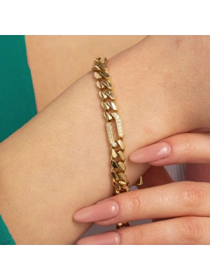 14 Ayar Altın Taşlı Gurmet Zincir Bileklik