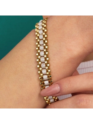 14 Ayar Altın Taşlı Rolex Kordon Zincir Bileklik