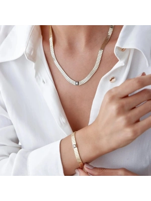 14 Ayar Altın Trapez Ezme Zincir Set Takımı