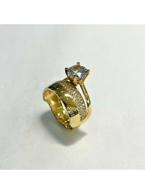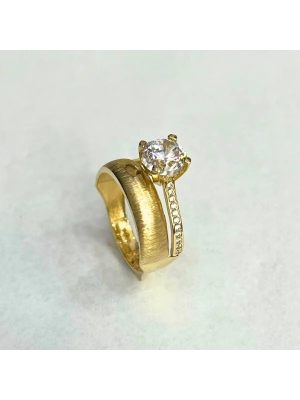 14 Ayar Altın Fantezi Alyans Tektaş Yüzük