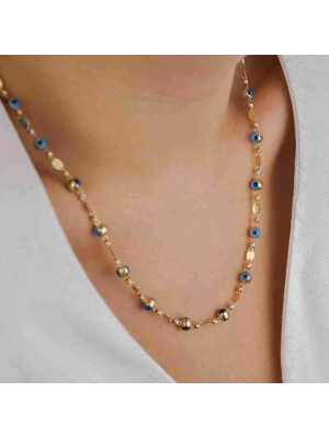 14 Ayar Altın Nazarlı Pullu Zincir