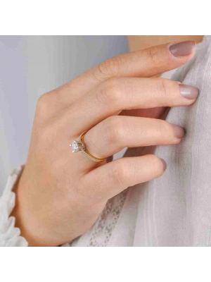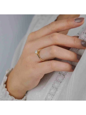 14 Ayar Altın Damla Tektaş Yüzük