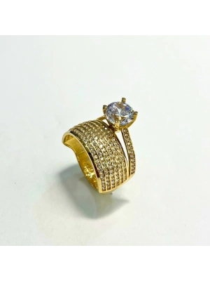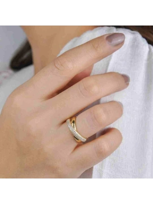 14 Ayar Altın Çapraz Taşlı Yüzük