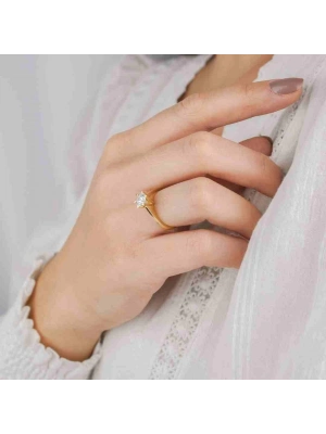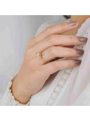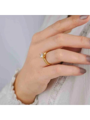 14 Ayar Altın Damla 6 Tırnaklı Yüzük
