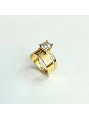 14 Ayar Altın Geniş Tektaş Yüzük