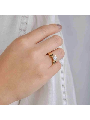 14 Ayar Altın Yan Taşlı Yüzük