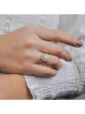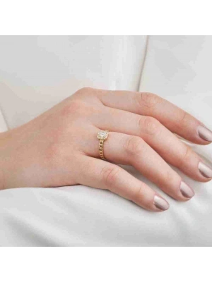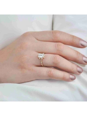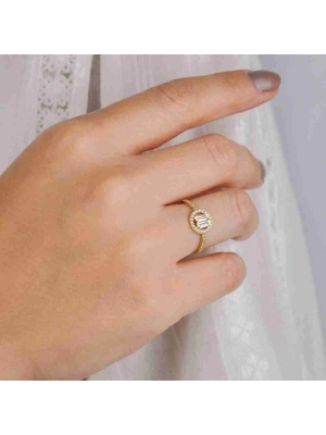 14 Ayar Altın Üç Kollu Taşlı Baget Yüzük