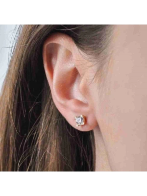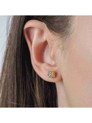 14 Ayar Altın Kare Desenli Vidalı Küpe