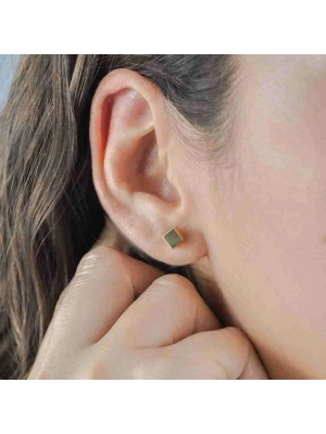 14 Ayar Altın Kare Mat Vidalı Küpe