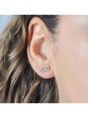 14 Ayar Altın Taşlı Sonsuzluk Vidalı Küpe