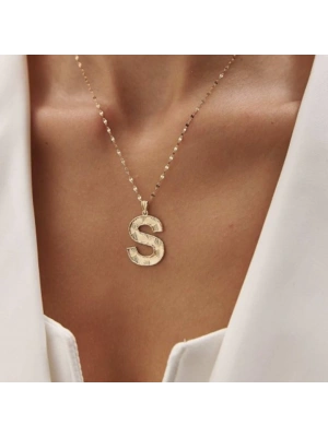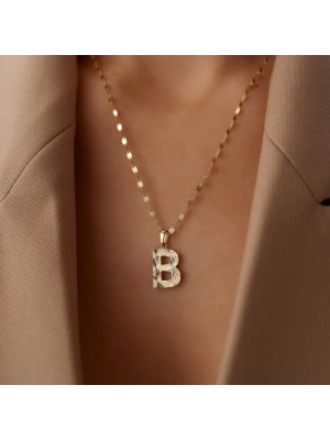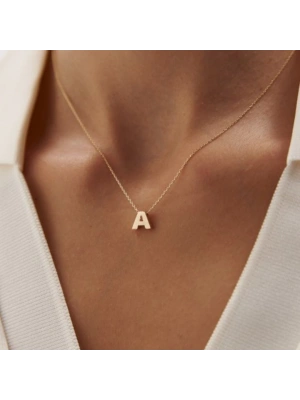 14 Ayar Altın Küp Zincirli Nostaljik Harf Kolye