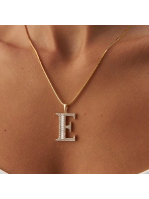 14 Ayar Altın Force Zincirli Taşlı Küp Harf Kolye