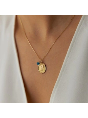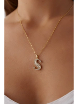 14 Ayar Altın Singapur Zincirli Taşlı Harf Kolye