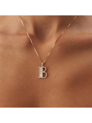 14 Ayar Altın Küp Zincirli Taşlı Harf Kolye