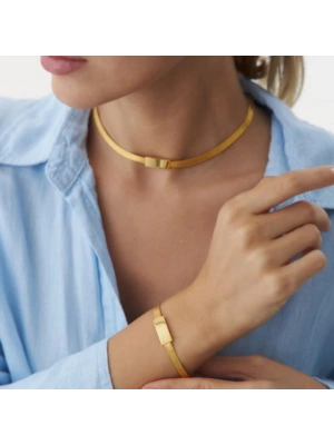 14 Ayar Altın Ayna Zincirli Kalemli Harf Kolye