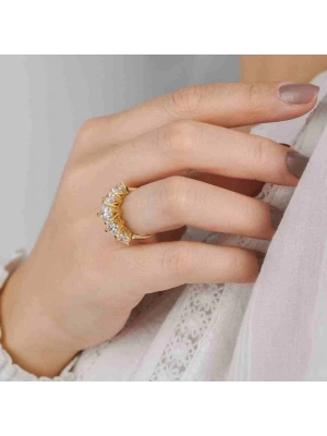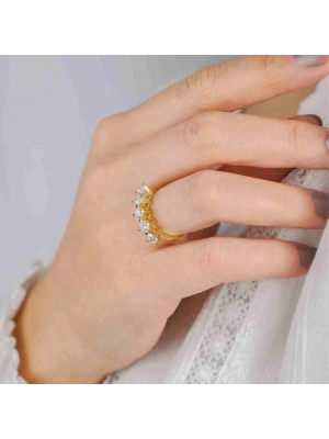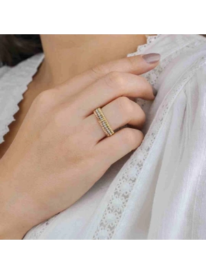 14 Ayar Altın Üç Sıra Renkli Dorika Yüzük