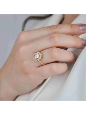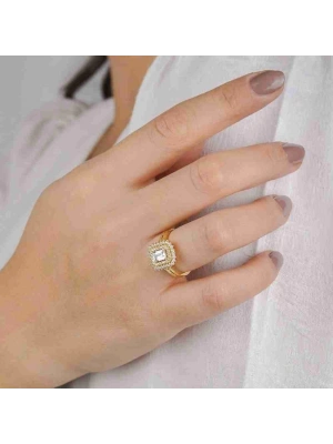 14 Ayar Altın Çerçeveli Baget Yüzük