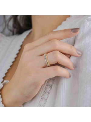 14 Ayar Altın Çift Sıra Renkli Dorika Yüzük