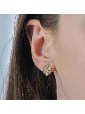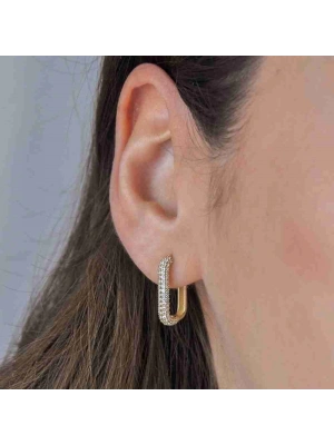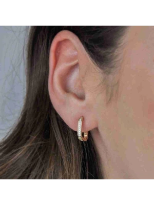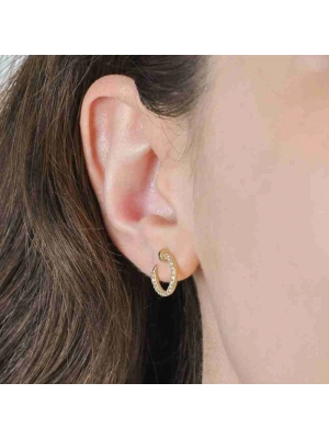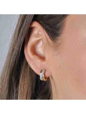 14 Ayar Altın Çift Sıra Taşlı Halka Küpe