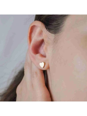 14 Ayar Altın Plaka Kalp Vidalı Küpe